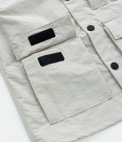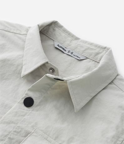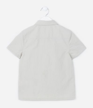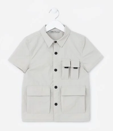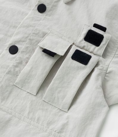 Ref: Camisa infantil confeccionada em poliamida, com gola colarinho, mangas curtas e detalhes de bolsos com lapelas e fechamento por velcro.