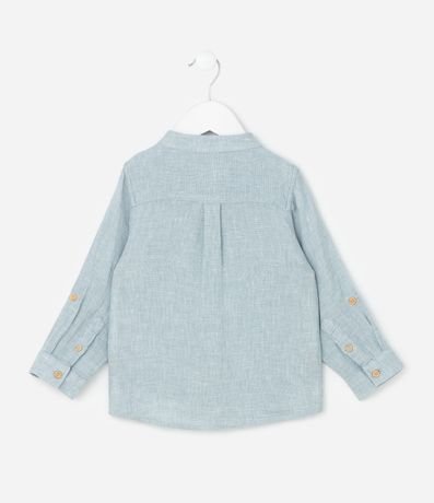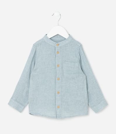 Ref: Camisa infantil confeccionada em viscolinho mais sustentável através de boas práticas ambientais. Possui gola padre, manga longa, abotoamento frontal contrastante, bolsinho e sem estampa.