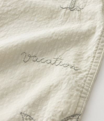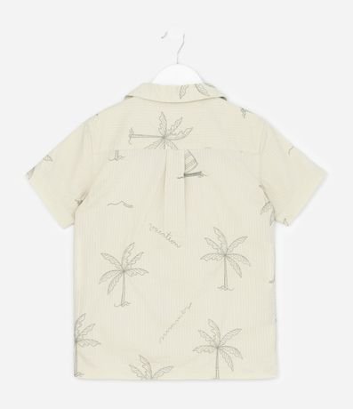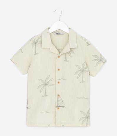 Camisa infantil confeccionada em algodão com estampa de coqueiros e barcos, trazendo leveza e estilo para os dias quentes. Possui gola tradicional, mangas curtas e fechamento por botões frontais. Confeccionado em algodão certificado BCI e boas práticas ambientais, garantindo conforto e sustentabilidade.