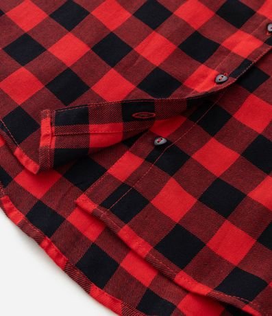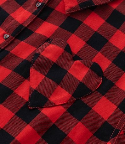 Ref: Camisa infantil com mangas longas, gola colarinho, fechamento frontal por botões, confeccionada em algodão e com estampa xadrez. O charme da peça fica no bolsinho em formato de coração, uma fofura!