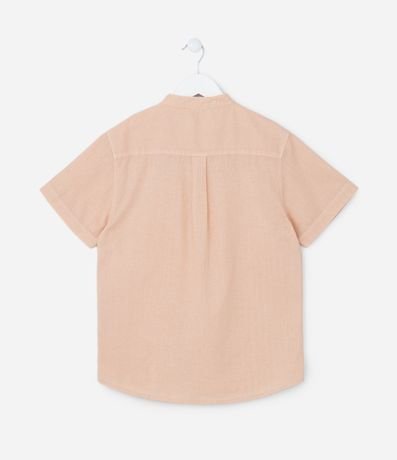 Ref: Camisa infantil confeccionada em malha de algodão e linho, com gola padre e mangas curtas. Sem estampa, possui diferencial de lavagem estonada, bolsinho no peito e abotoamento frontal total.