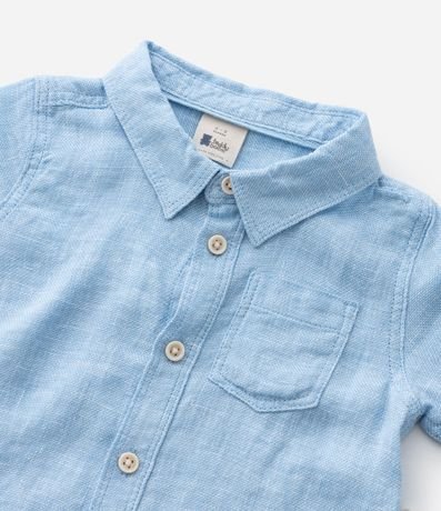 Camisa infantil  confeccionada em cambraia. Possui gola colarinho, manga curta, abotoamento frontal, bolsinho, etiqueta aplicada e sem estampa.