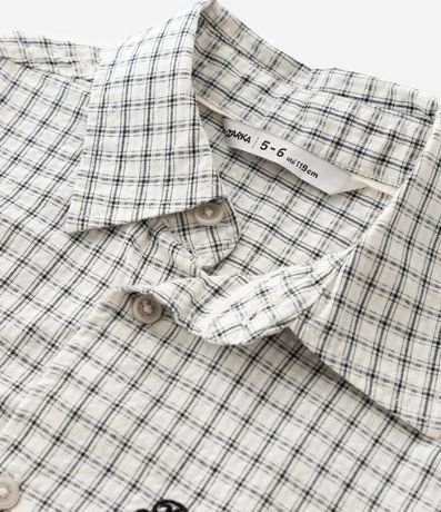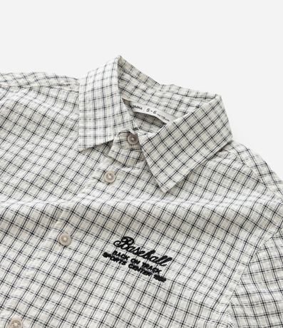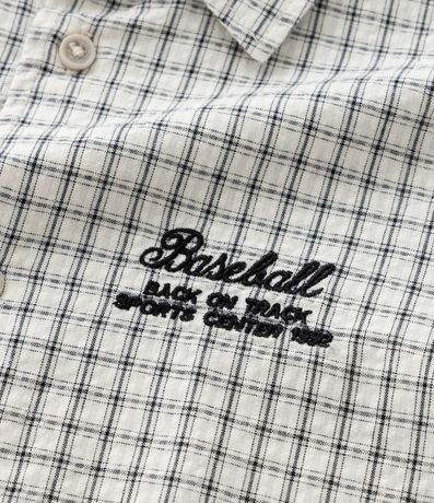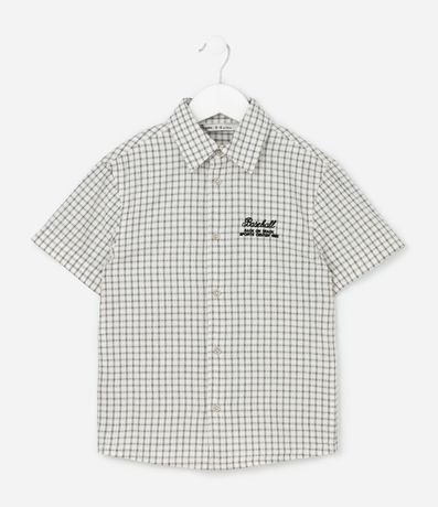 Ref: Camisa infantil confeccionada em flanela mais sustentável através de boas práticas ambientais. Possui gola colarinho, manga curta, abotoamento frontal, estampa xadrez e lettering bordado "Baseball".
