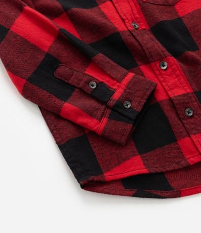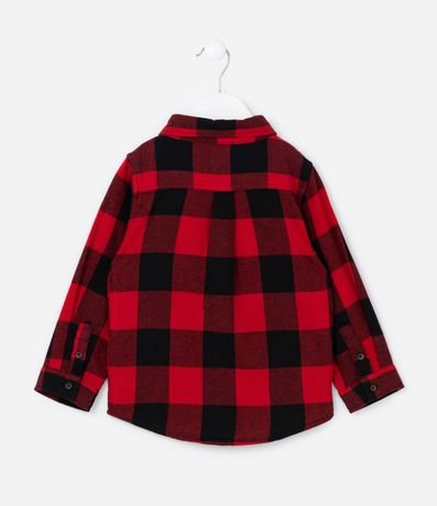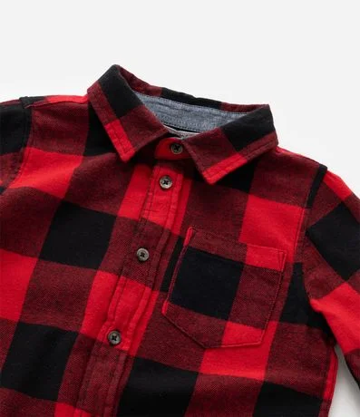 Ref: Camisa infantil confeccionada em flanela, de algodão certificado mais sustentável. Possui gola colarinho, manga longa, bolsinho no peito e estampa xadrez.