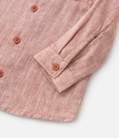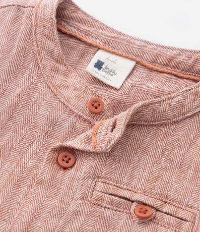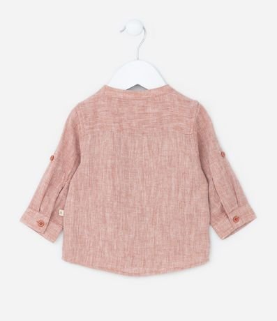 Ref: Camisa infantil confeccionada em linho e algodão. Possui gola padre, mangas longas com botões, bolsinho frontal e fechamento por botões.