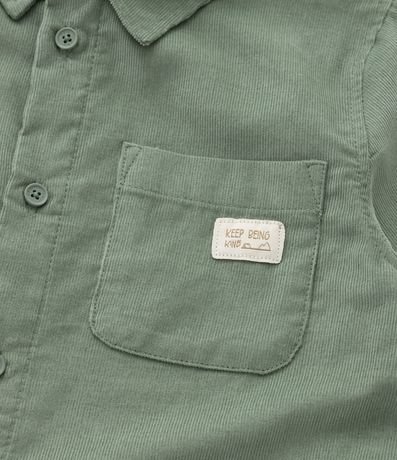 Ref: Camisa infantil confeccionada em veludo cotelê, com gola colarinho tradicional e mangas longas. Sem estampa, possui detalhe frontal de bolsinho com etiqueta bordada e abotoamento frontal total. Este produto foi produzido através de processo mais sustentável, adotando boas práticas ambientais e também possui algodão BCI em sua composição.