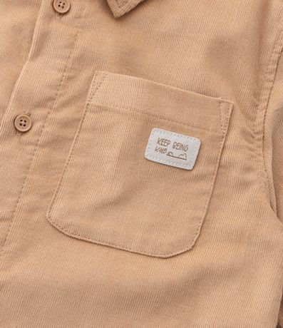 Ref: Camisa infantil confeccionada em veludo cotelê, com gola colarinho tradicional e mangas longas. Sem estampa, possui detalhe frontal de bolsinho com etiqueta bordada e abotoamento frontal total. Este produto foi produzido através de processo mais sustentável, adotando boas práticas ambientais e também possui algodão BCI em sua composição.