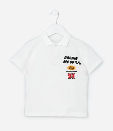 Camisa Infantil Polo com Estampa de Carro Racing - Tam 1 a 5/6 Anos