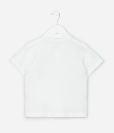 Camisa infantil polo confeccionada em algodão mais sustentável com boas práticas ambientais, peça com botões de pressão, manga curta e estampa de carros racing.