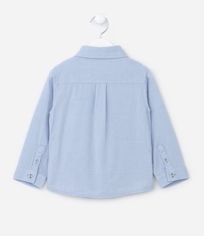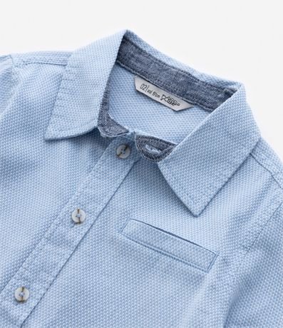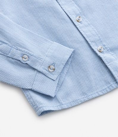 Camisa infantil texturizada, em oxford, com mangas longas e gola colarinho. Possui fechamento por botões e tag na barra.