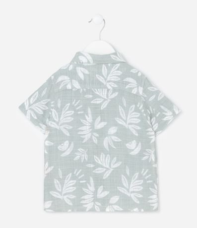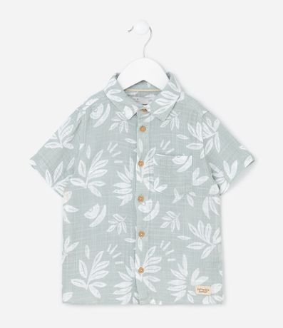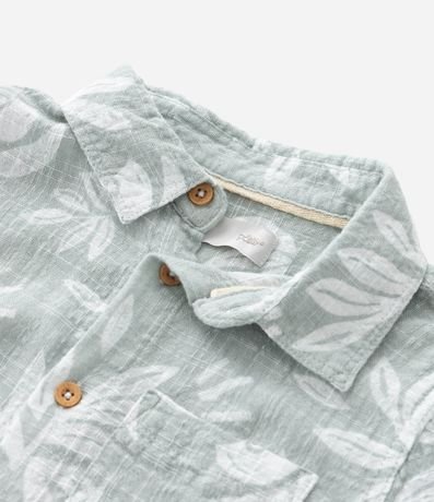 Ref: Camisa infantil confeccionada em algodão mais sustentável através de boas práticas ambientais. Possui gola colarinho, manga curta, abotoamento frontal, estampa de folhagens e texturizada.