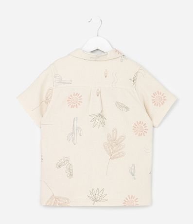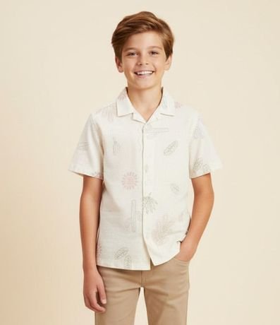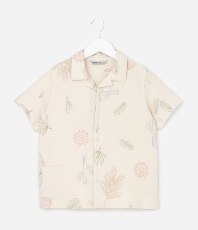 Ref: Camisa infantil confeccionada em algodão de material mais sustentável. Possui gola colarinho, mangas curtas, fechamento por botões e estampa de cactos e folhas.