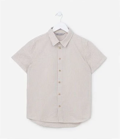 Ref: Camisa infantil em poliéster com mangas curtas e texturizada com listras.