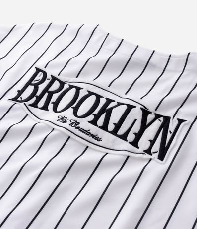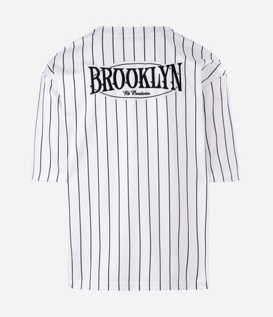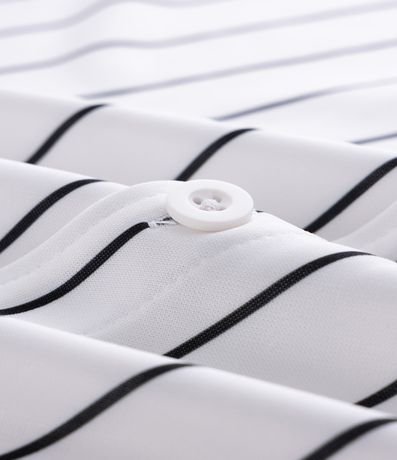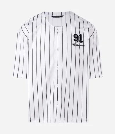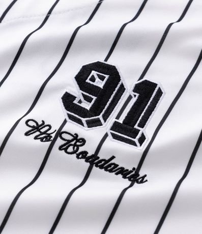 Ref: Camisa masculina confeccionada em microfibra, com manga curta, padronagem de listras e detalhe de bordado localizado estilo baseball, ideal para um visual moderno e casual.
