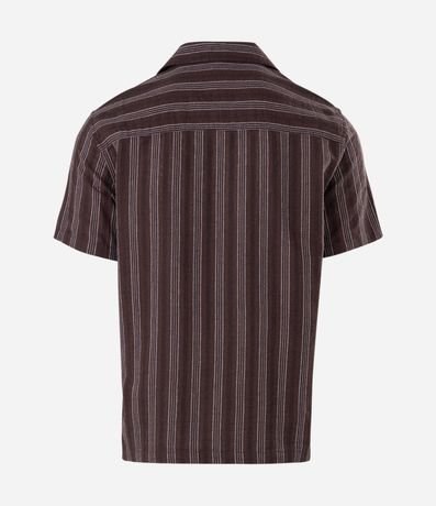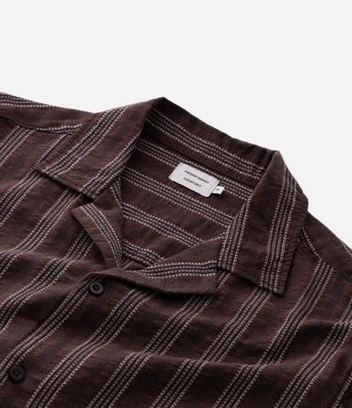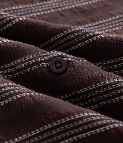 Ref: Camisa masculina confeccionada em jacquard mais sustentável através de boas práticas ambientais. Possui gola lapela, manga curta, abotoamento frontal, listras e textura.