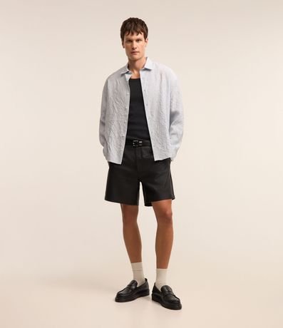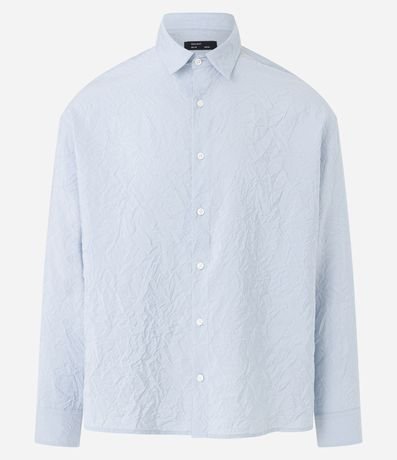 Ref: Camisa masculina confeccionada em viscose e poliéster, com gola tradicional e mangas longas. Sem estampa possui textura com efeito amassado e abotoamento frontal total.