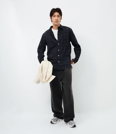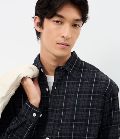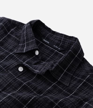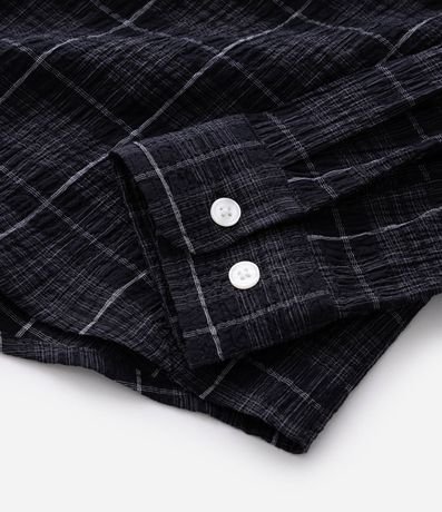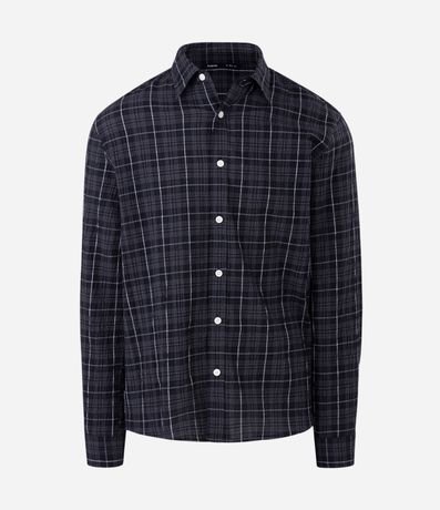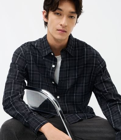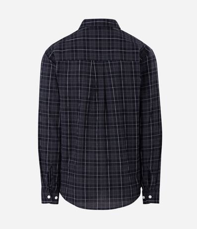 Ref: Camisa masculina em tricoline, com estampa xadrez, gola colarinho, abotoamento frontal.