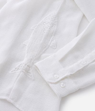 Camisa Manga Longa Texturizada com Detalhes em Bordado de Peixe