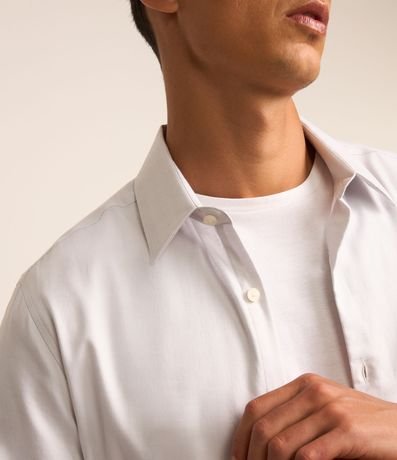 Ref: Camisa masculina, gola lapela, abotoamento frontal, maquinetado com textura zig zag.