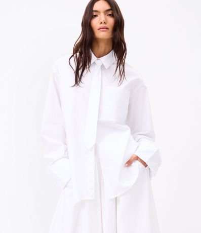 Ref: Camisa maxi oversized de mangas longas, confeccionada em tricoline, com punhos largos, colarinho e gravata na gola, além, de abotoamento frontal com vista oculta. Este produto possui algodão certificado em sua composição, sendo ambientalmente mais responsável.