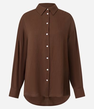 Ref: Camisa levinha confeccionada em cambraia, com gola tradicional colarinho e mangas longas. Sem estampa, a peça possui comprimento mais alongado, cava deslocada e abotoamento frontal total.