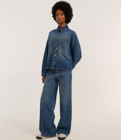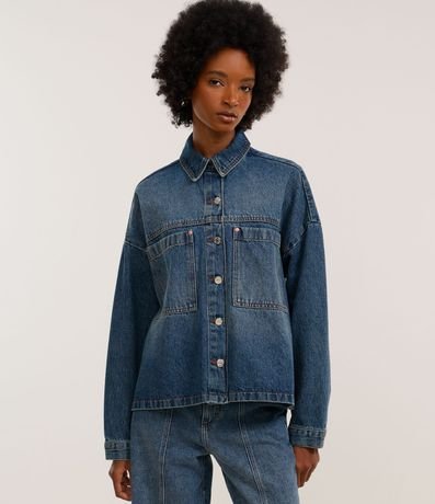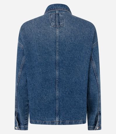 Ref: Camisa overshirt com manga longa, confeccionada em jeans com algodão bci, abotoamento frontal e bolsos grandes no peito.