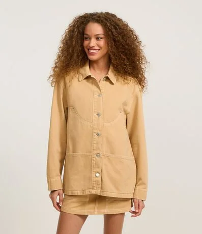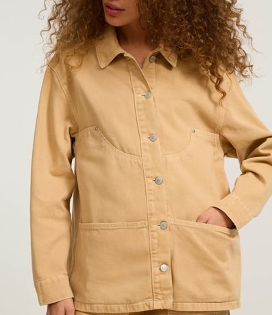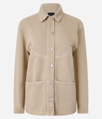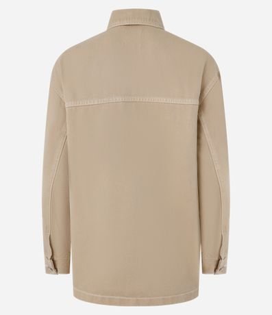Ref: Camisa overshirt, trucker com manga longa, confeccionada em sarja com algodão agroecológico, recortes e pespontos contrastantes.