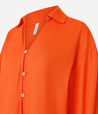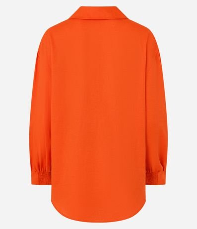 Ref: Camisa feminina confeccionada em viscose certificada e linho, no modelo oversized alongada com gola em v, lapela, abotoamento frontal e manga longa ajustada.