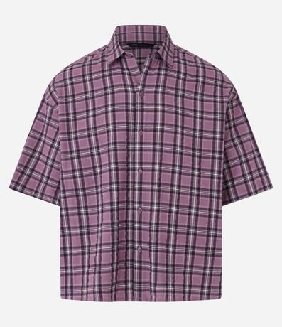Ref: Camisa masculina, em flanela, gola colarinho, abotoamento, manga curta. Peça no modelo oversized, com efeito amassadinho.