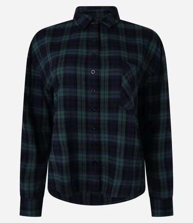 Camisa Oversized em Flanela Xadrez com Bolsinho