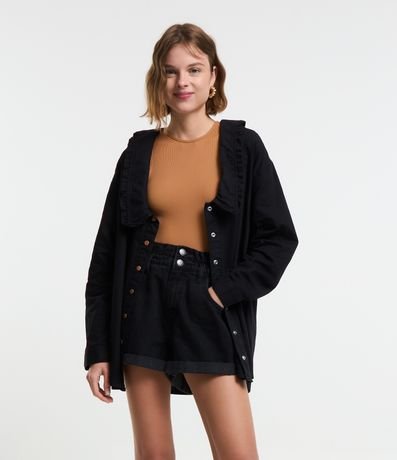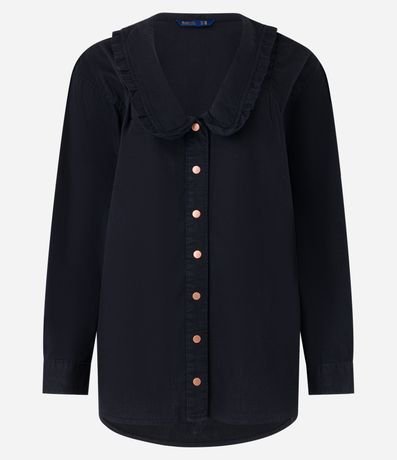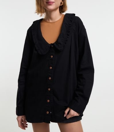 Ref: Camisa oversized em jeans com gola com babadinho e fechamento por botões na frontal.