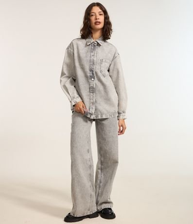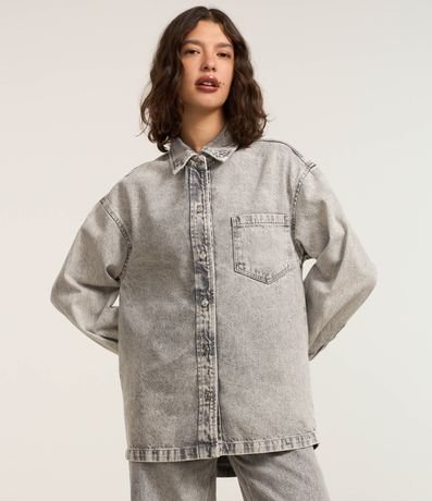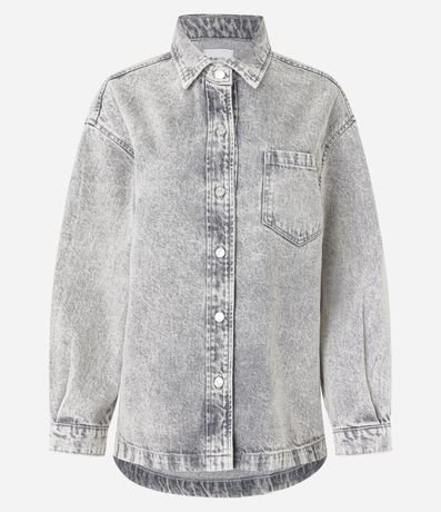 Camisa Oversized em Jeans com Bolso e Cava Deslocada