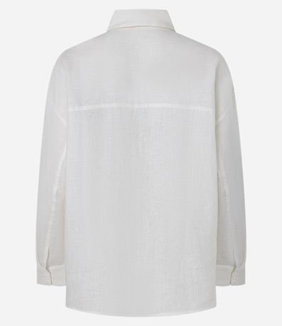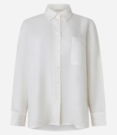 Ref: Camisa oversized de mangas longas, confeccionada em linho, com botões frontais, bolso no peito e punhos largos.