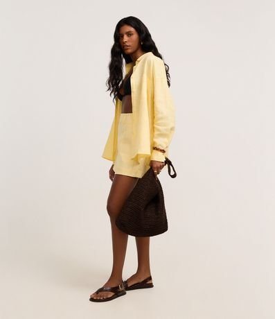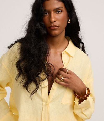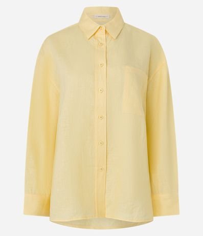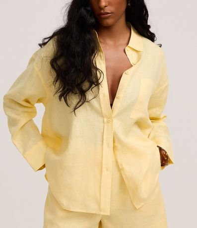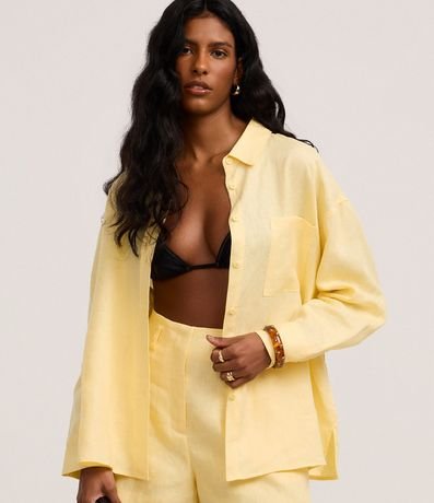 Ref: Camisa oversized de mangas longas, confeccionada em linho, com botões frontais, bolso no peito e punhos largos.