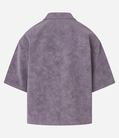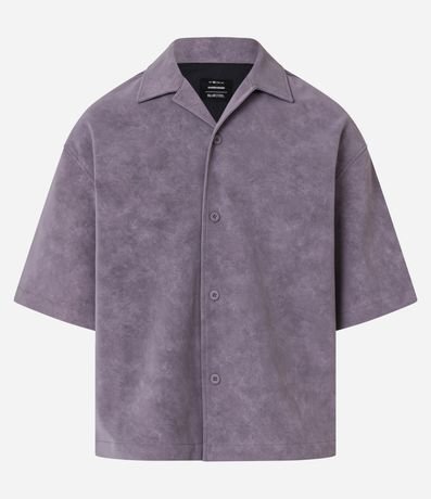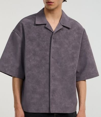 Ref: Camisa masculina confeccionada em material sintético, no modelo oversized. Possui gola lapela, manga curta, abotoamento frontal e efeito estonado.