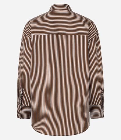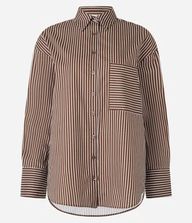 Ref: Camisa oversized confeccionada em tricoline, bolso grande no peito, botões para fechamento frontal e listras em fio tinto.