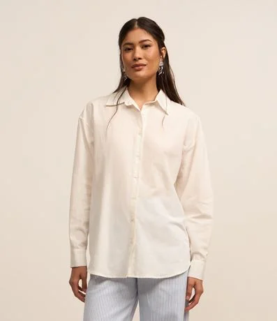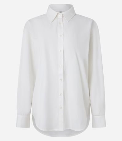 Ref: Camisa oversized com manga longa, confeccionada em tricoline e com abotoamento frontal.
