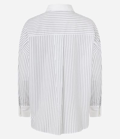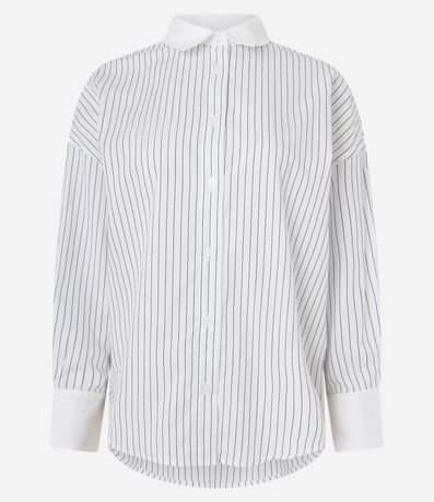 Ref: Camisa oversized de mangas longas com punhos largos, confeccionada em tricoline, com colarinho na gola, botões frontais e listras verticais de fios tintos. Este produto possui algodão certificado BCI em sua composição, sendo ambientalmente mais responsável.