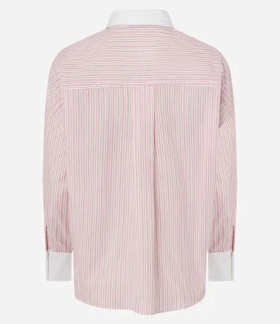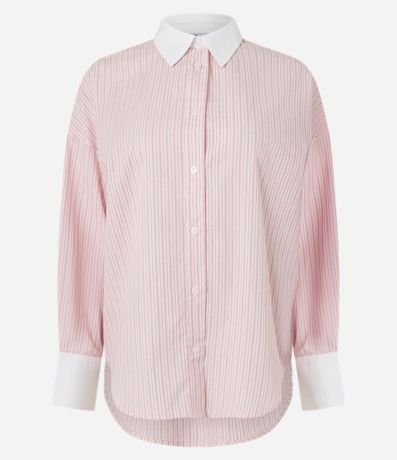 Ref: Camisa oversized de mangas longas com punhos largos, confeccionada em tricoline, com colarinho na gola, botões frontais e listras verticais de fios tintos. Este produto possui algodão certificado BCI em sua composição, sendo ambientalmente mais responsável.