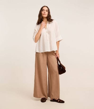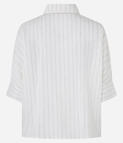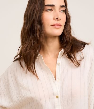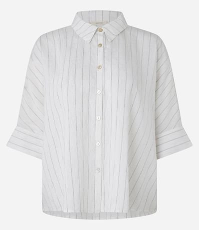 Ref: Camisa ampla, confeccionada em tweed com viscose mais sustentável com 04% de linho, com colarinho na gola e abotoamento frontal. Peça tem mangas curtas dobradas de comprimento mais amplo e tecido com listras verticais em fios tintos.