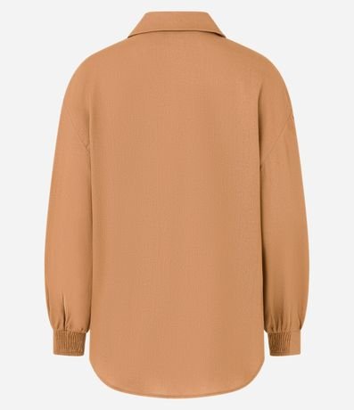Camisa oversized confeccionada em viscose e linho, abotoamento frontal e elástico nos punhos.