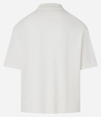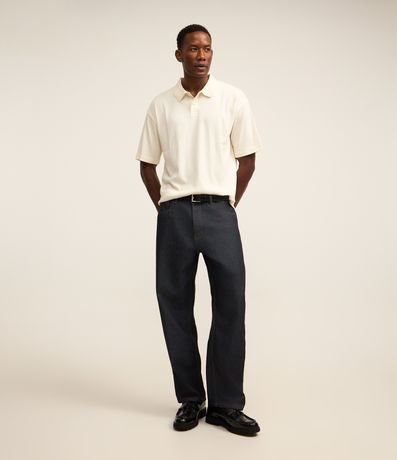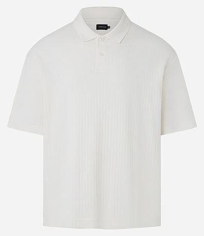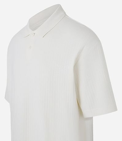 Polo masculina confeccionada em algodão mais sustentável, gola tradicional com textura canelada vertical.