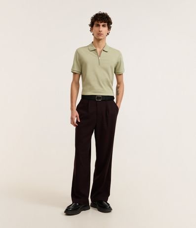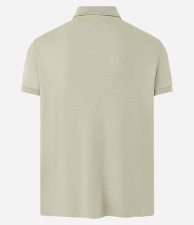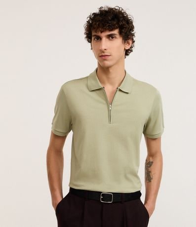 Polo masculina confeccionada em algodão peruano mais sustentável, gola colarinho com zíper e manga curta.