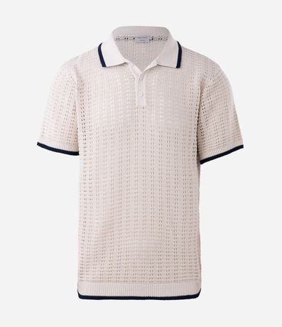 Ref: Camisa polo masculina texturizada com mangas curtas. Possui texturização com efeito crochê, gola em v e detalhe contrastante na barra de sua manga e gola.