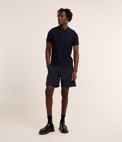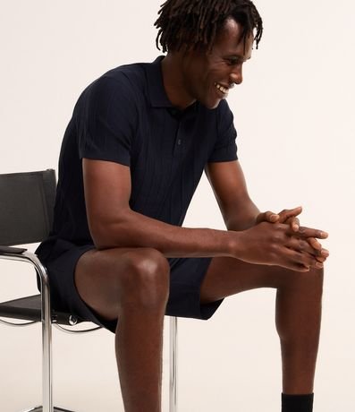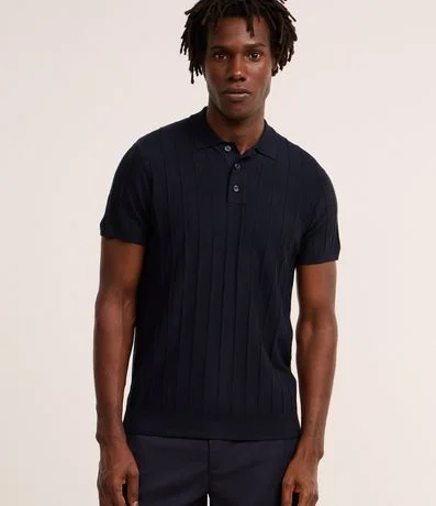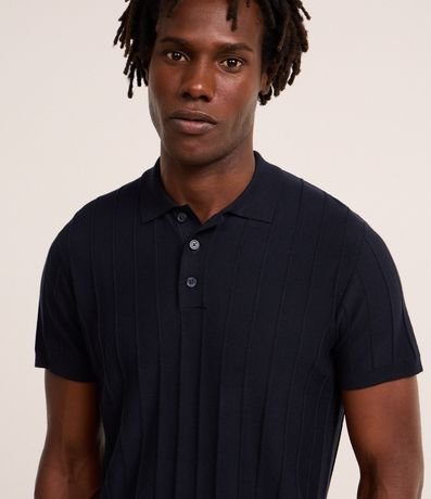 Camisa masculina confeccionada em tricô mais sustentável através de boas práticas ambientais, no modelo polo. Possui botões na gola e textura vertical.