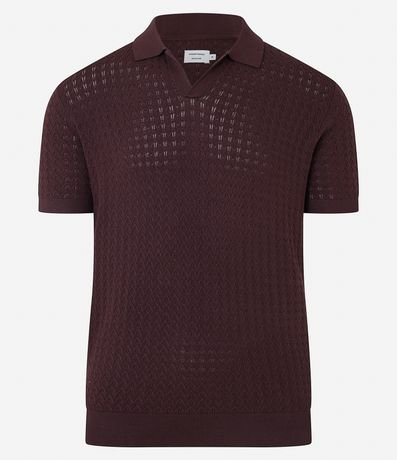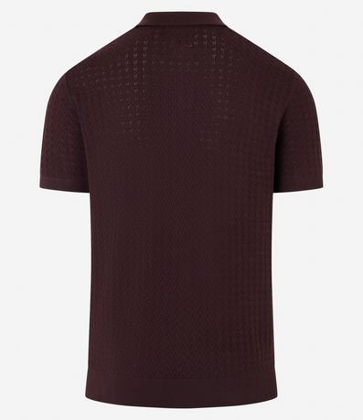 Polo masculina confeccionada com viscose mais sustentável e poliamida, modelo com gola tradicional sem botão, manga curta, textura zig zag com furinhos.