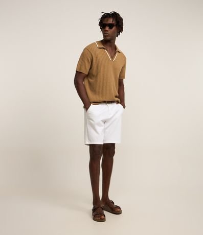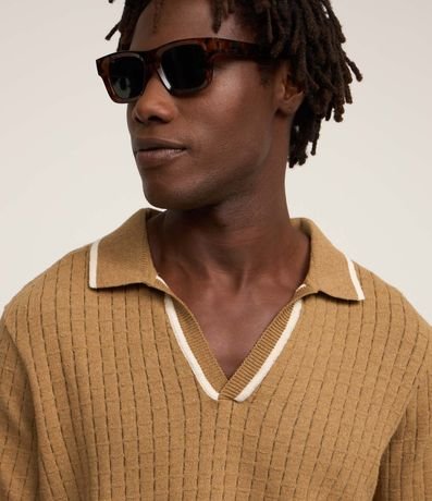 Ref: Polo masculina confeccionada em mix de malhas, gola colarinho com listra contrastante, manga curta, textura.