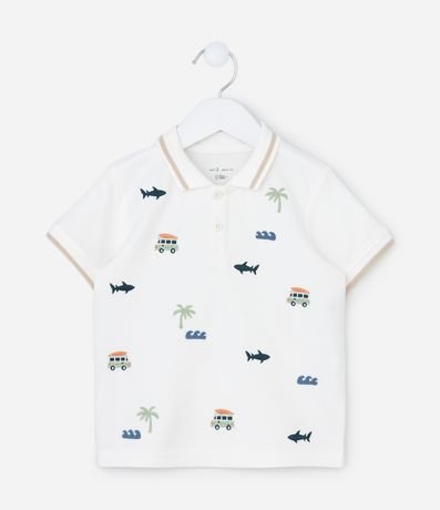 Camisa Polo Infantil com Estampa Bordada - Tam 1 A 5 Anos
