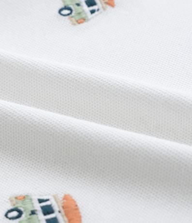 Camisa polo infantil confeccionada em piquet mais sustentável através de boas práticas ambientais. Possui abotoamento na gola, manga curta, detalhes contrastantes e estampa bordada.