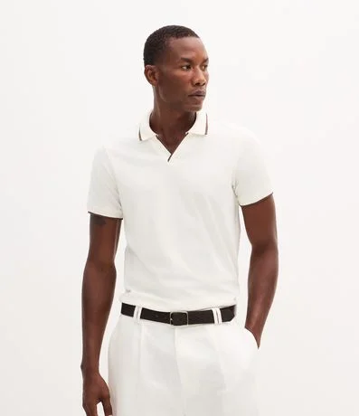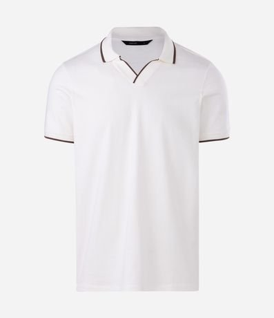 Ref: Camisa polo manga curta em meia malha com gola em V e filetes contrastantes que destacam o visual. Possui caimento confortável, toque macio e modelagem versátil para o dia a dia. Peça leve e moderna, confeccionada em algodão de certificado BCI.